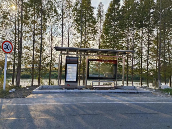 新垛镇公交候车亭是典型例子,该镇是施耐庵故里,正以“水浒文化”锻造特色田园乡村。为契合地方文化特色,当地候车亭设计为仿古站台,采用咖啡色烤漆不锈钢为材料,站牌、亭边沿雕刻象征水的波纹,并设置水浒人物形象。“去年建成9座,今年建成26座,不仅行政村覆盖,还延伸到8个自然村。”新垛镇农路站负责人陈桂军说。